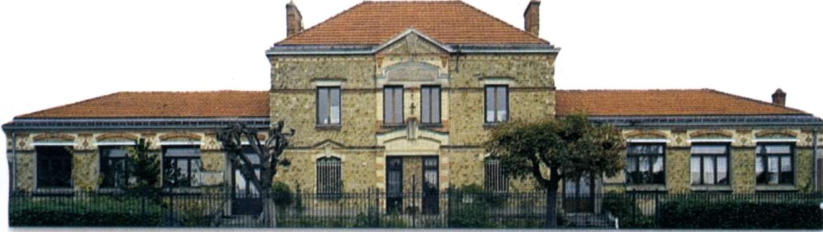 par un pavillon central divisé en deux parties égales, où logent les instituteurs.